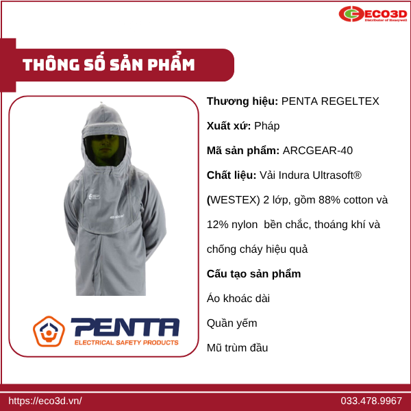Thông tin kỹ thuật bộ quần áo hồ quang PENTA REGELTEX ARCGEAR-40 40CAL