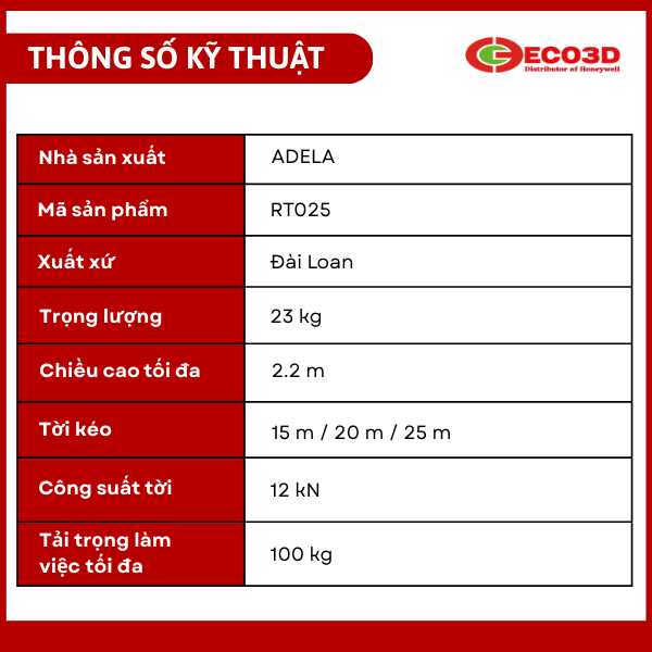 2. Thông số kỹ thuật bộ tời 3 chân ADELA RT-025