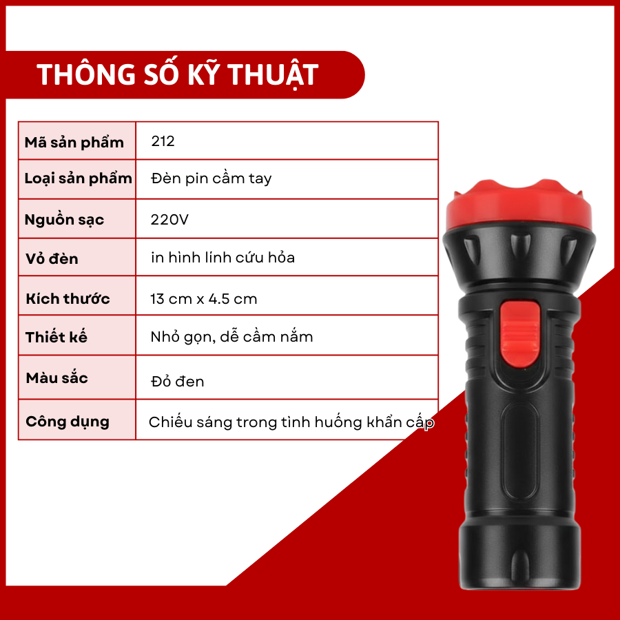 2. Thông số kỹ thuật đèn pin cứu hỏa 119