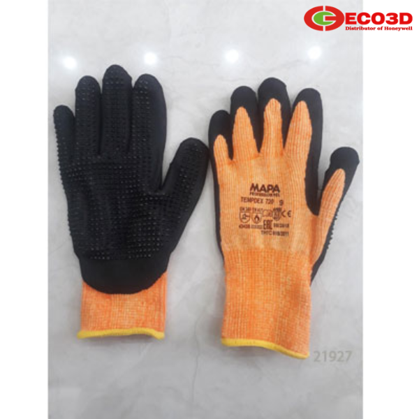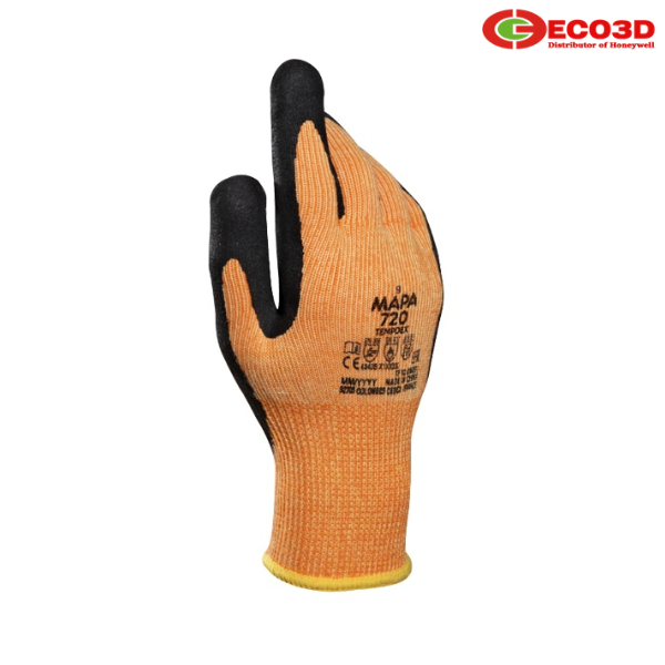 Găng tay chịu nhiệt chống cắt Mapa Tempdex 720 là dòng găng tay bảo hộ cao cấp đến từ thương hiệu Mapa (Pháp), được thiết kế chuyên dụng cho môi trường làm việc có nhiệt độ cao và nguy cơ cắt đứt. Sản phẩm sử dụng sợi aramide kết hợp lớp phủ nitrile giúp tăng độ bền và khả năng bảo vệ tay tối ưu.