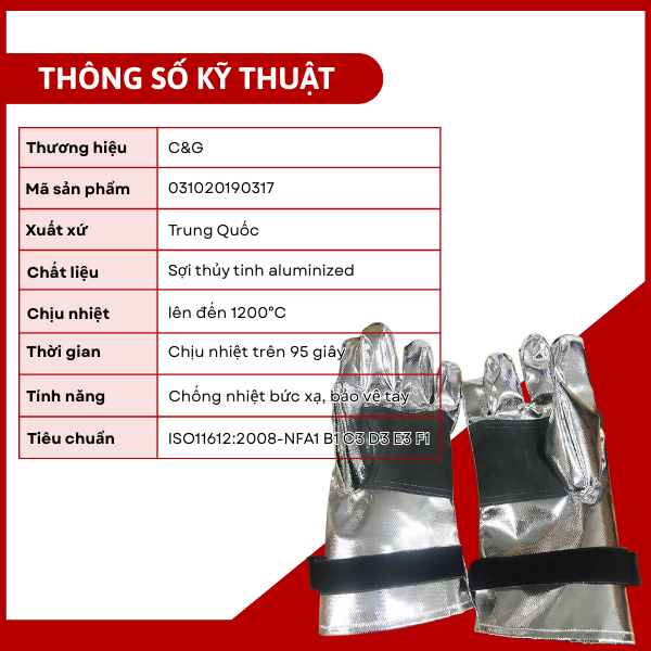 Thông số găng tay chịu nhiệt độ cao C&G 3H 1200°C