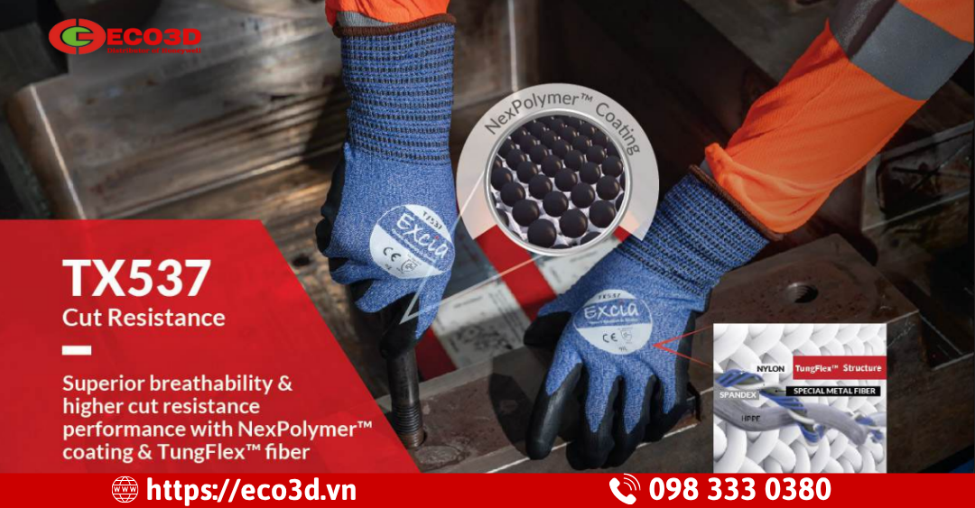 Khám phá găng tay chống cắt TX537 với cấp độ E, sợi TungFlex™ chống cắt, lớp phủ NexPolymer™ thân thiện môi trường. Thoáng khí 360°, nhẹ mềm, an toàn thực phẩm. Lý tưởng cho máy móc, ô tô, nông nghiệp. Tăng độ bền, khéo léo vượt trội. Chọn TX537 ngay để an toàn tối ưu!