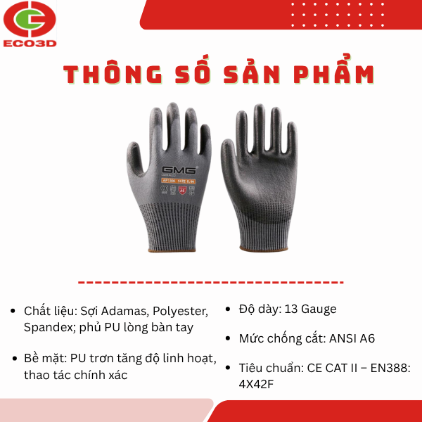 ĐỊA CHỈ CUNG CẤP GĂNG TAY CHỐNG CẮT PHỦ PU GMG AP1306 CHÍNH HÃNG