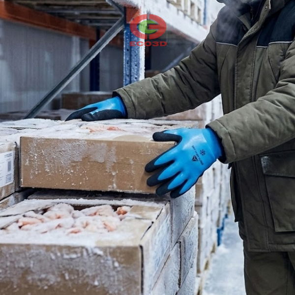 Cấu trúc găng tay linh hoạt giúp thao tác dễ dàng khi làm việc ngoài trời hoặc trong kho lạnh.
