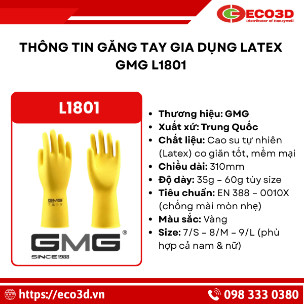 Găng tay gia dụng Latex GMG màu vàng – Bảo vệ toàn diện khi tiếp xúc nước, dầu mỡ & hóa chất nhẹ