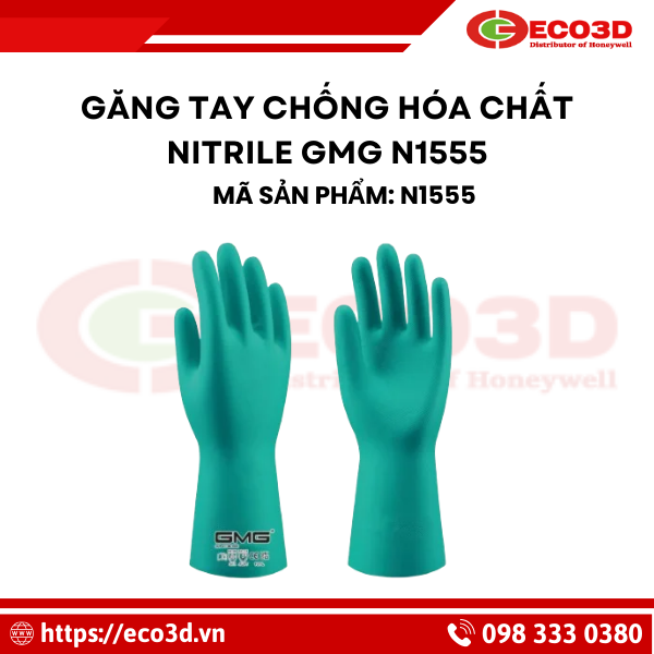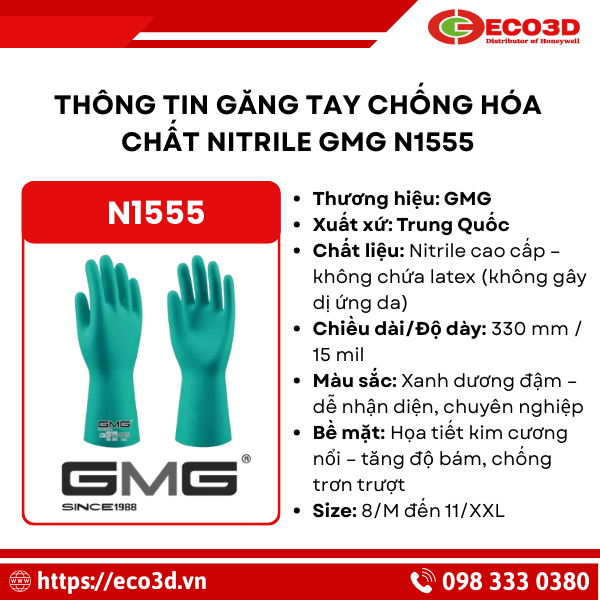 Găng tay Nitrile công nghiệp GMG N1555 – Bảo vệ tối đa khỏi hóa chất, dầu mỡ & vi sinh vật