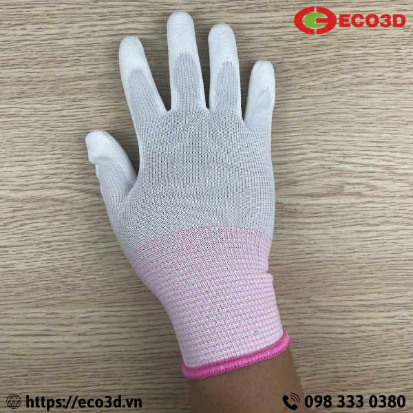 1. Giới thiệu găng tay sợi trắng phủ PU viền hồng