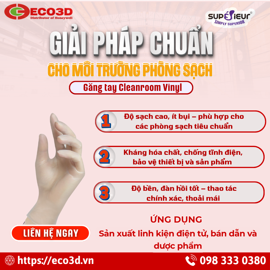 Găng tay Vinyl phòng sạch chuyên dụng là lựa chọn tối ưu cho những môi trường cần găng tay dùng một lần, giá thành hợp lý nhưng vẫn đảm bảo các tiêu chuẩn về vệ sinh, chống tĩnh điện và an toàn. Đây chính là giải pháp hiệu quả cho doanh nghiệp sản xuất điện tử, y tế, thực phẩm và nhiều lĩnh vực khác.