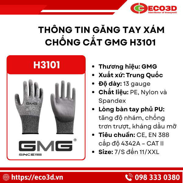 Thông tin găng tay chống cắt A1 phủ PU GMG H3101