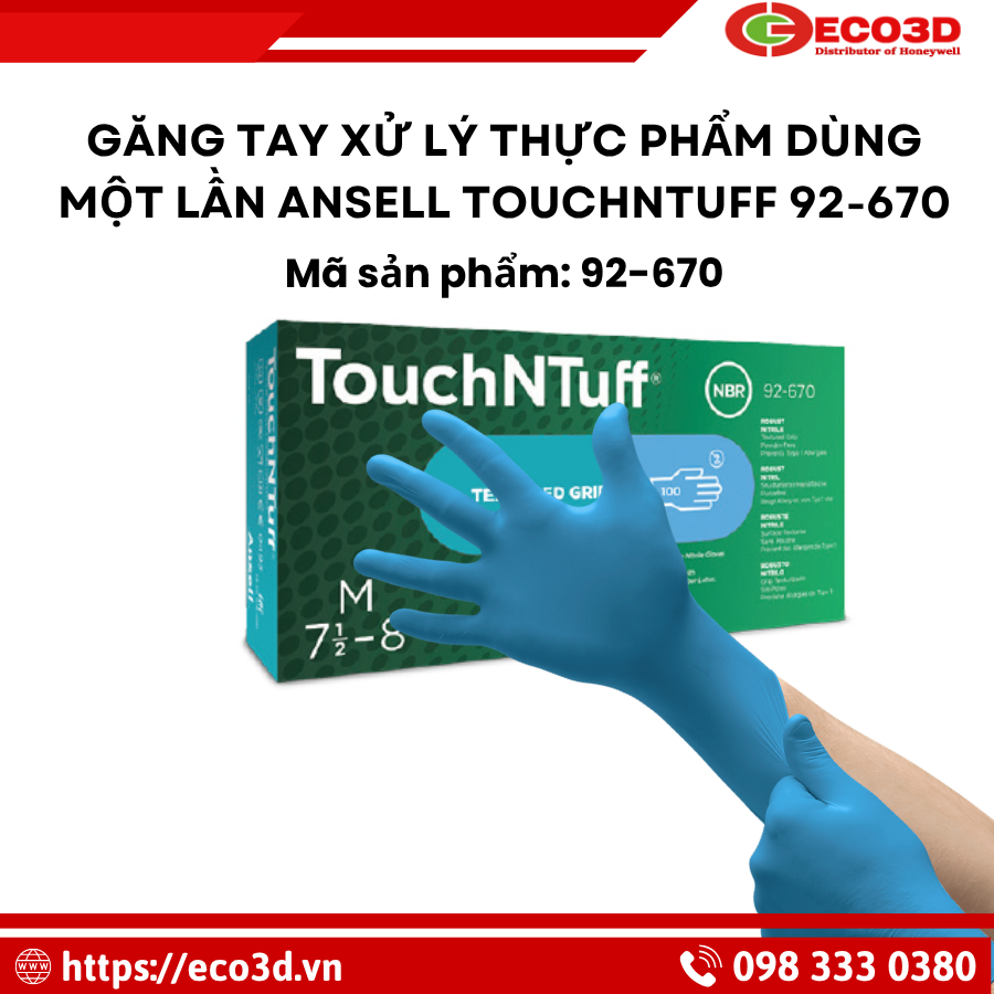 Găng tay xử lý thực phẩm dùng một lần Ansell TouchNTuff® 92-670 – Chống văng bắn hóa chất, đạt chuẩn an toàn thực phẩm và siêu bền bỉ