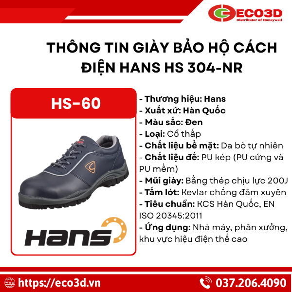Thông Số Giày Bảo Hộ Cách Điện Hans HS 304-NR