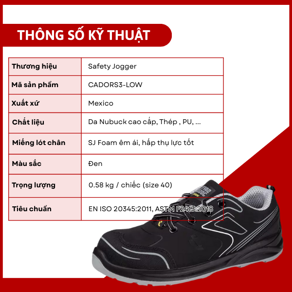 2. Thông số kỹ thuật giày Safety Jogger CADORS3LOW