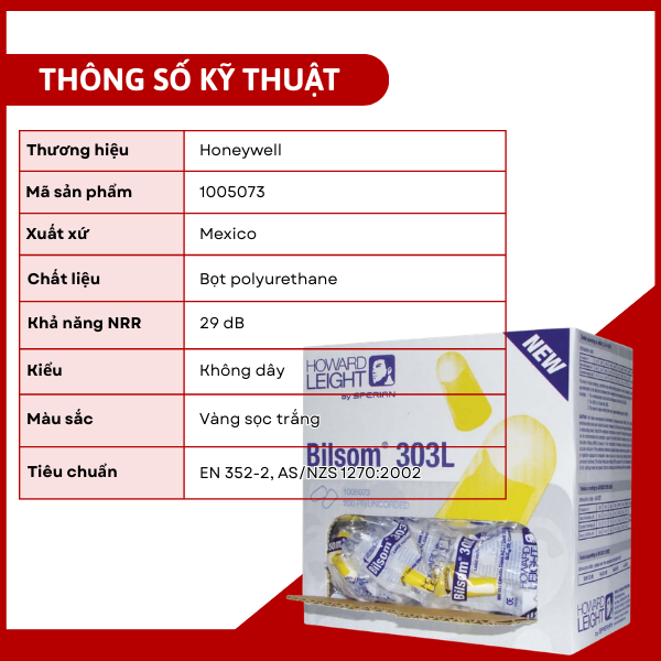 2. Thông số kỹ thuật nút tai Bilsom 303L