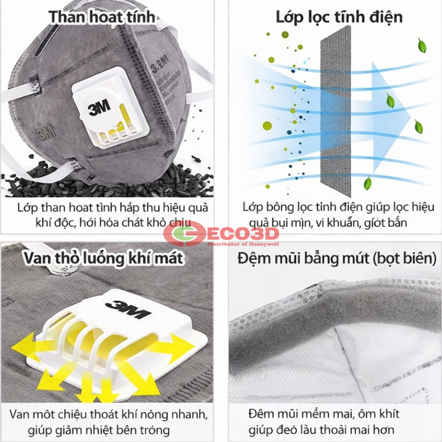 Khẩu Trang Lọc Bụi Bảo Vệ Hô Hấp có van 3M 9541V hiện được phân phối tại ECO3D, đơn vị cung cấp thiết bị bảo hộ lao động uy tín với nhiều sản phẩm chính hãng và đầy đủ chứng nhận chất lượng.