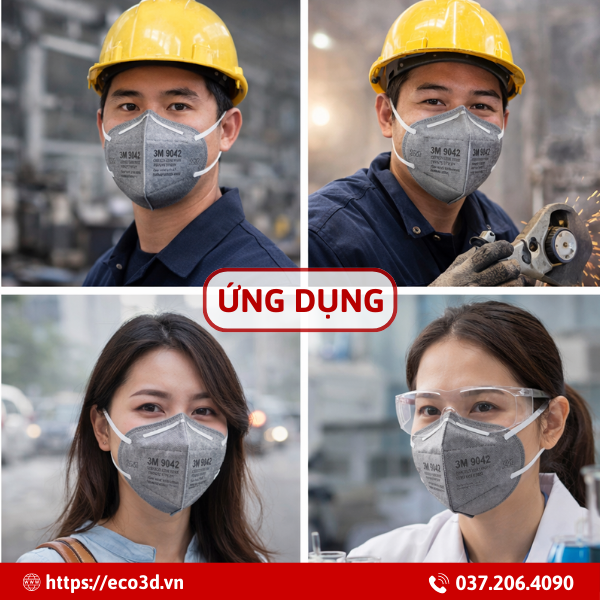 Khẩu trang than hoạt tính 3M 9042 KN90 hiện được phân phối tại ECO3D, đơn vị cung cấp thiết bị bảo hộ lao động uy tín với nhiều sản phẩm chính hãng và đầy đủ chứng nhận chất lượng.