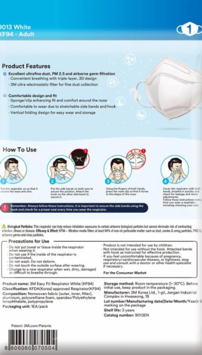 Khẩu trang tiêu chuẩn KF94 9013, Trắng