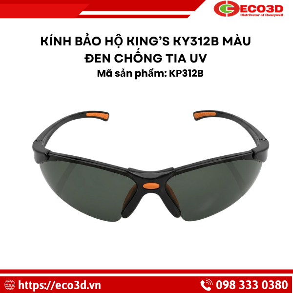 ECO3D chuyên phân phối thiết bị bảo hộ lao động chính hãng, cung cấp kính bảo hộ Kingwear KY312B KW màu đen chống tia UV với đầy đủ chứng nhận tiêu chuẩn.