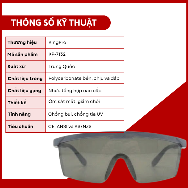 2. Thông số kỹ thuật kính bảo hộ KingPro DEFENDER KP-7132 Smoke