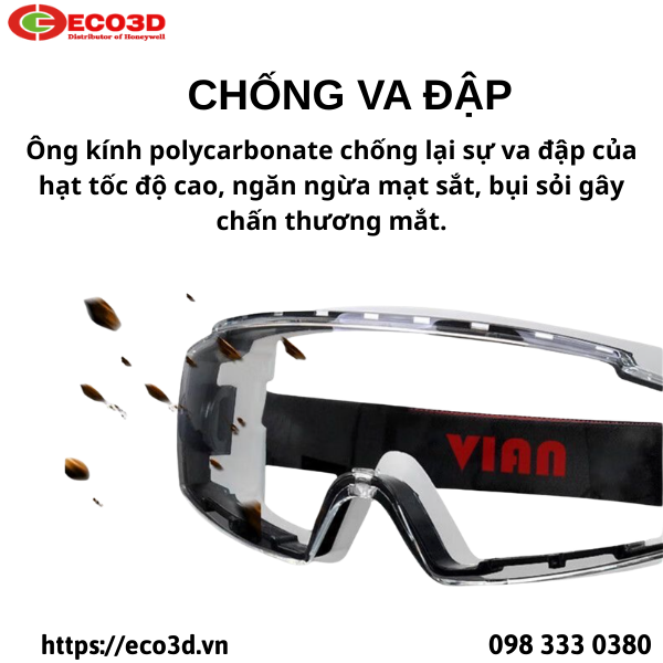 ECO3D là đơn vị chuyên phân phối thiết bị bảo hộ lao động chính hãng, cung cấp kính bảo hộ VIAN 1603AF với đầy đủ chứng nhận và giá cạnh tranh.