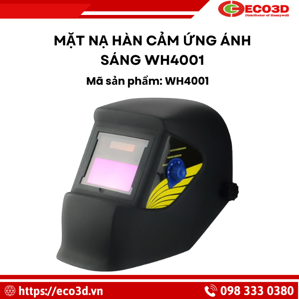 Mặt nạ hàn cảm ứng ánh sáng WH4001 là thiết bị bảo hộ chuyên dụng dành cho thợ hàn, giúp bảo vệ mắt và khuôn mặt khỏi tia hồ quang, tia uv, tia hồng ngoại và ánh sáng chói cường độ cao trong quá trình hàn. Sản phẩm được trang bị kính lọc tự động đổi màu nhanh, giúp người lao động làm việc an toàn, liên tục và hiệu quả hơn so với mặt nạ hàn truyền thống.