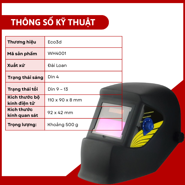 2. Thông số kỹ thuật mặt nạ hàn WH4001