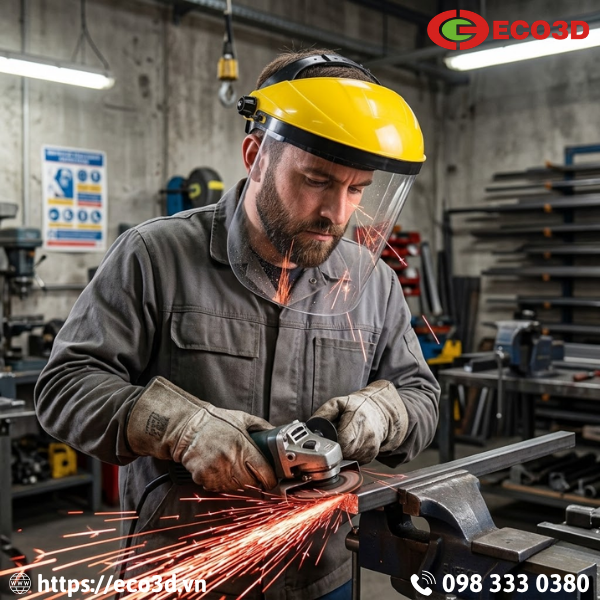 Trong các công việc mài, cắt kim loại, người lao động thường xuyên tiếp xúc với tia lửa, bụi kim loại và tia UV, có thể gây nguy hiểm cho mắt và da mặt.