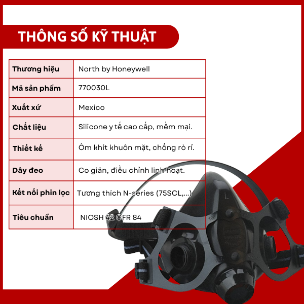 Mặt nạ phòng độc nửa mặt Honeywell North 7700 là thiết bị bảo hộ hô hấp cao cấp đến từ thương hiệu North by Honeywell – một trong những nhà sản xuất thiết bị an toàn hàng đầu thế giới. Sản phẩm được thiết kế nhằm bảo vệ người lao động khỏi bụi mịn, khói độc, hơi hóa chất và khí gas trong môi trường làm việc nguy hiểm, đồng thời mang lại sự thoải mái khi sử dụng lâu dài.