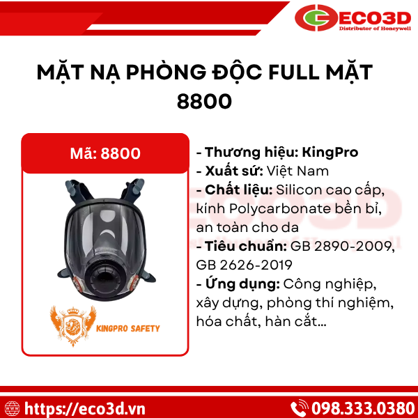 Bảo Hộ Lao Động ECO3D cung cấp mặt nạ phòng độc full mặt ECO3D 8800 chính hãng, kèm giấy chứng nhận CO-CQ. Với dịch vụ tư vấn chuyên nghiệp, giá cả cạnh tranh và giao hàng nhanh toàn quốc, ECO3D là lựa chọn đáng tin cậy cho cá nhân và doanh nghiệp.