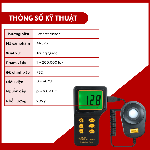 2. Thông số kỹ thuật máy đo cường độ ánh sáng Smartsensor AR823+