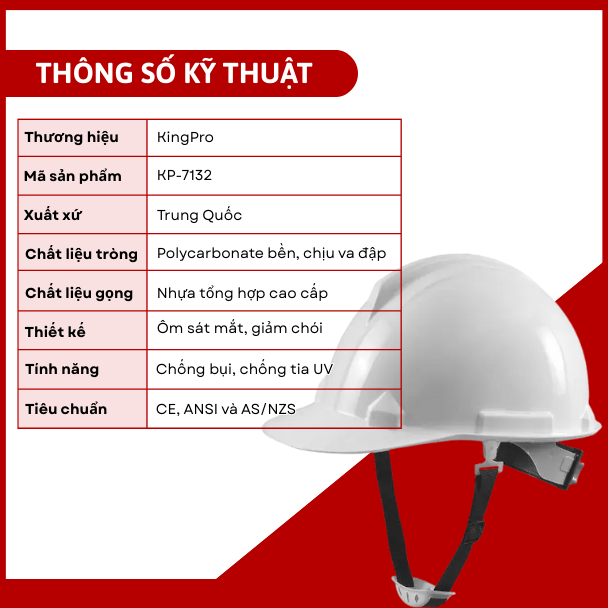 - Thiết kế: mũ có gờ đỉnh chống va đập