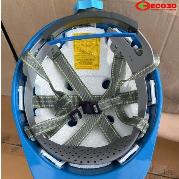 Bên trong mũ được trang bị lồng nón 6 chấu kết hợp dây vải, giúp phân tán lực khi xảy ra va đập. Nhờ vậy, lực tác động lên đầu được giảm đáng kể, hạn chế nguy cơ chấn thương cho người lao động.