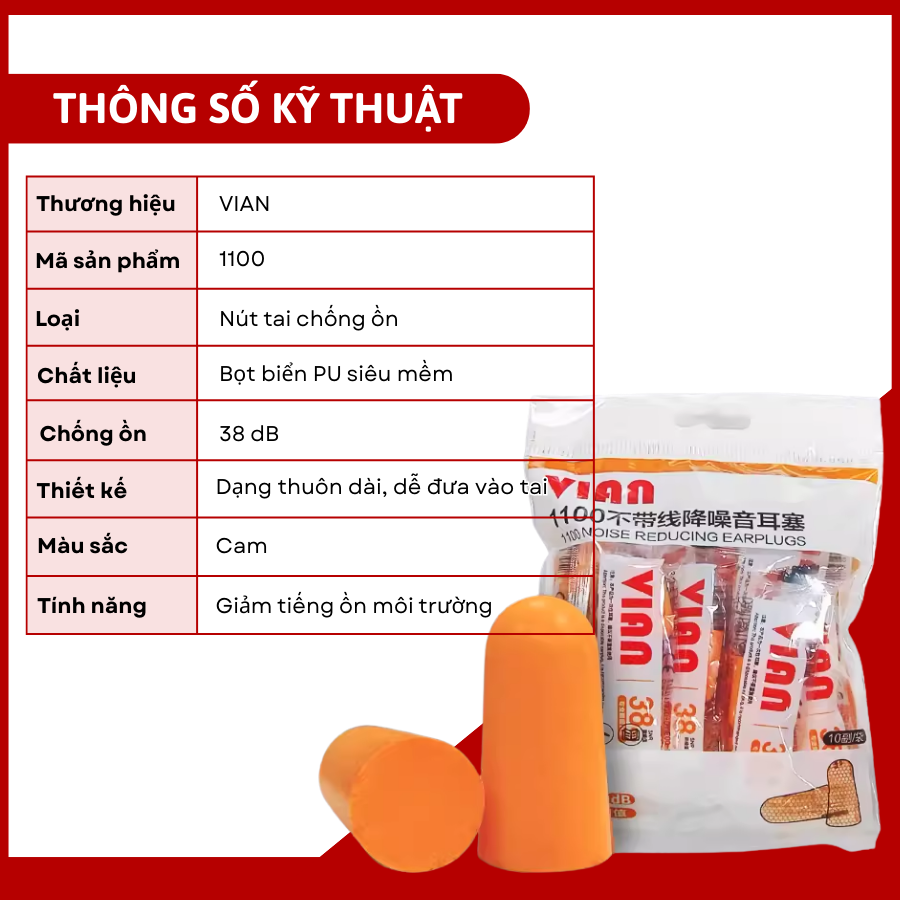 Nút bịt tai chống ồn vian 1100 cao cấp – bảo vệ thính giác đơn giản, hiệu quả