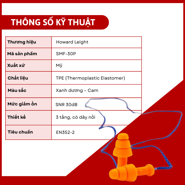 2. Thông số kỹ thuật nút tai chống ồn Howard Leight SMF-30-P