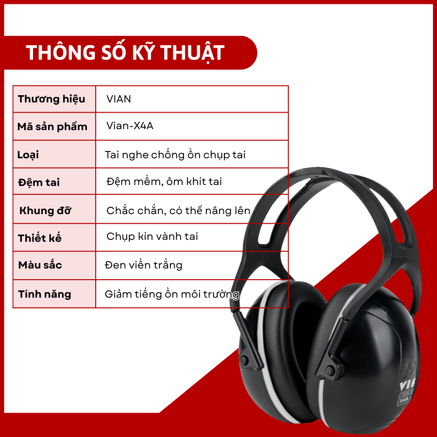 2. Thông số kỹ thuật tai nghe chống ồn VIAN X4A Pro