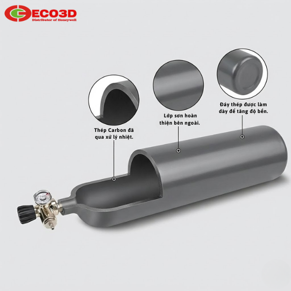 Bình thép SCBA được chế tạo từ thép hợp kim cường độ cao, có khả năng chịu áp suất lớn. Các mức áp suất phổ biến là 200 bar và 300 bar, phù hợp cho nhiều hệ thống SCBA công nghiệp.