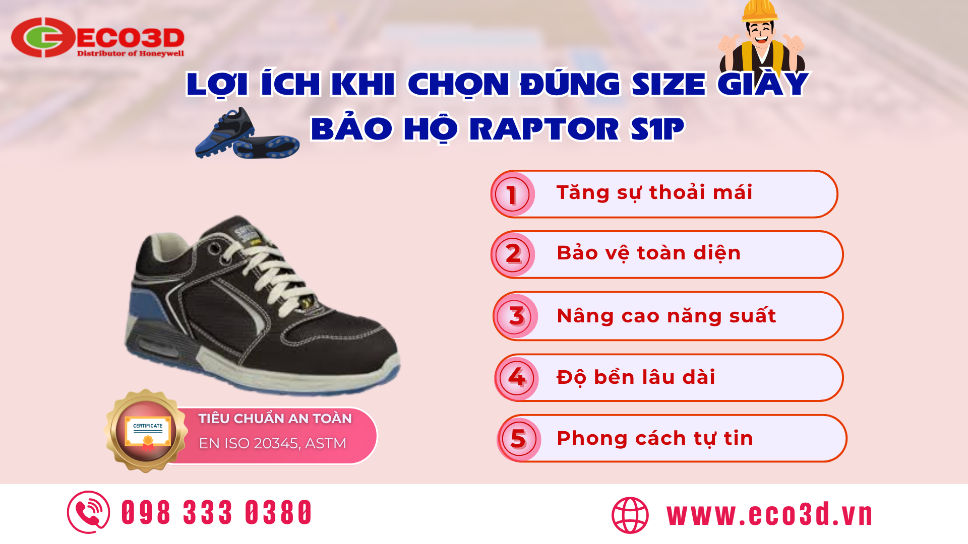 Chọn đúng size RAPTOR S1P không chỉ mang lại sự thoải mái mà còn tăng hiệu suất làm việc, bảo vệ sức khỏe và phong cách cho người lao động.