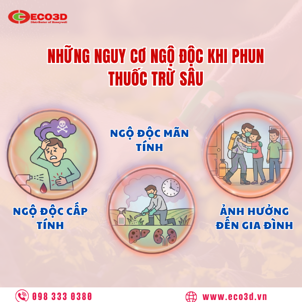 Ngộ độc khi xịt thuốc trừ sâu là rủi ro phổ biến trong nông nghiệp, có thể xảy ra qua đường hô hấp, da hoặc tiêu hóa nếu không sử dụng trang bị bảo hộ phù hợp. Tình trạng này có thể biểu hiện cấp tính như chóng mặt, buồn nôn.