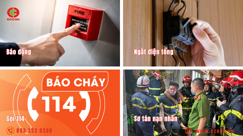 Ngay khi cảm biến khói hoặc người dân phát hiện lửa, hệ thống chuông báo động phải được kích hoạt ngay lập tức. Đồng thời, người chỉ huy phải gọi điện ngay cho đầu số 114 để thông báo chính xác địa chỉ, loại hình cháy và số lượng người đang kẹt bên trong.