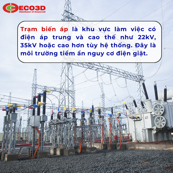 Trạm biến áp là khu vực làm việc có điện áp trung và cao thế như 22kV, 35kV hoặc cao hơn tùy hệ thống. Đây là môi trường tiềm ẩn nguy cơ điện giật và phóng điện hồ quang luôn hiện hữu, đặc biệt khi kỹ thuật viên thao tác trực tiếp trước tủ điện hoặc thiết bị đóng cắt. Trên thực tế, nhiều tai nạn lao động nghiêm trọng đã xảy ra do rò điện, chạm điện hoặc sự cố bất ngờ trong quá trình vận hành.